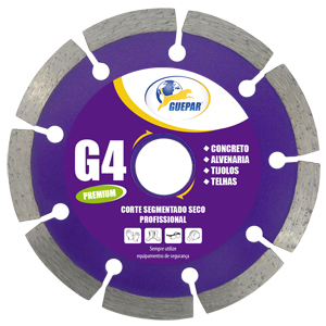 722 DISCO DE CORTE DIAMANTADO E SEGMENTADO SECO PROFISSIONAL G4 110MM 4.3/8 GUEPAR DISCO DE CORTE PISO ndicado para corte de concreto, alvenaria, tijolos e telhas. Características: Segmentado Corte Seco Profissional Máx. RPM: 13.800 ... R$0,00