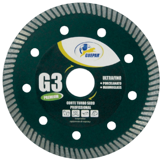 721 DISCO DE CORTE DIAMANTADO TURBO SECO PORCELANATO G3 110MM 4.3/8 GUEPAR 861-48498 DISCO DE CORTE PISO Indicado para corte de: Porcelanato; Marmoglass, Granito.  Características: Ultrafino Turbo Corte Seco Dentes Antipicotantes Máx. RPM: 13.800 Diâmetro: 11... R$0,00