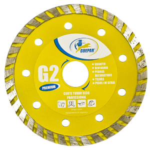 4477 DISCO DE CORTE DIAMANTADO PREMIUM TURBO SECO ECONOMICO G2 2 110MM 4.3/8 GUEPAR DISCO DE CORTE PISO ndicado para o corte de granito, alvenaria, pedras decorativas, tijolos e pisos em geral. Características: Turbo Corte Seco Contínuo Máx. RPM: 13.800 Diâme... R$0,00